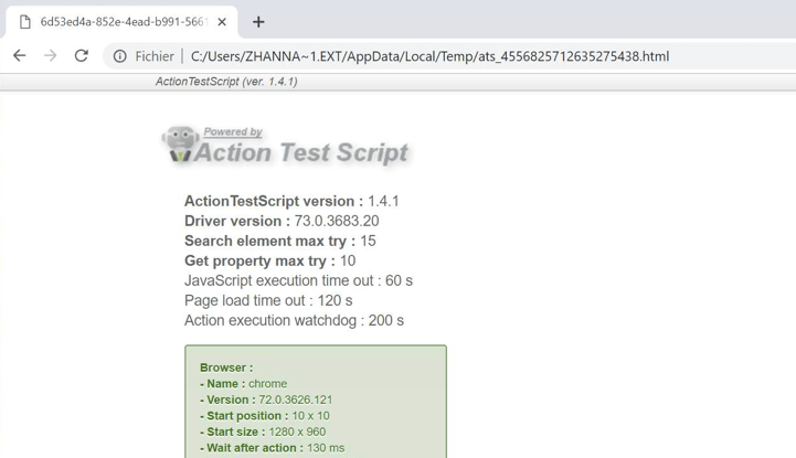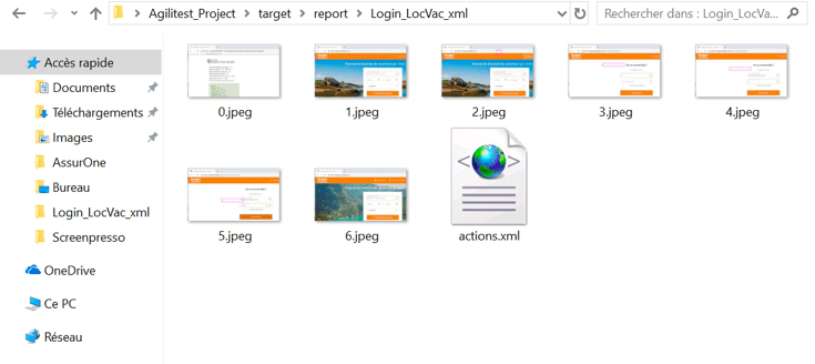 Agilitest génère un fichier « .xml » comprenant des informations importantes du déroulement d’un cas de test, ainsi que les images successives des différentes actions réalisées.